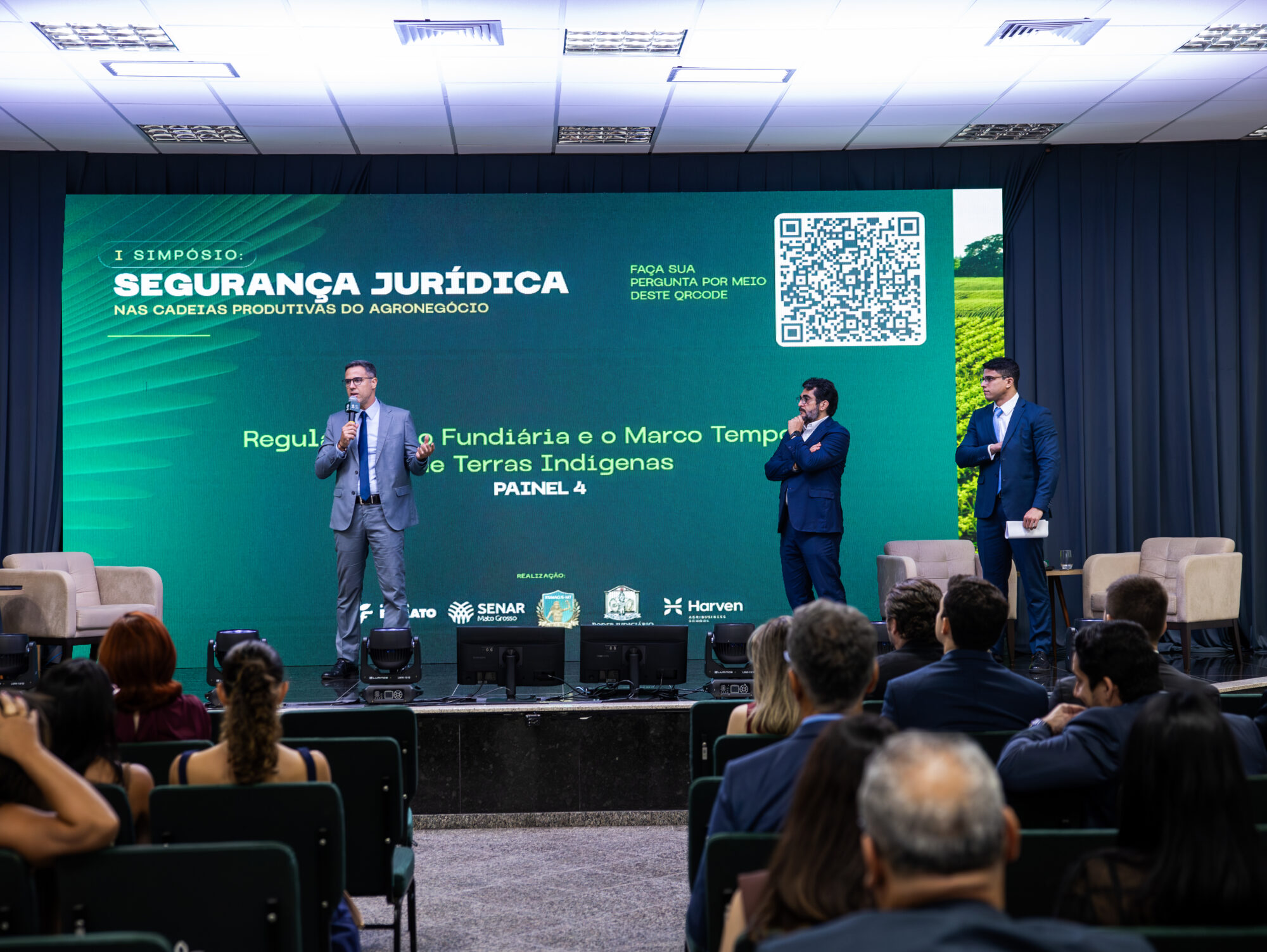 O I Simpósio Segurança Jurídica nas Cadeias Produtivas do Agronegócio é realizado pela Federação da Agricultura e Pecuária de Mato Grosso (Famato), Serviço Nacional de Aprendizagem Rural de Mato Grosso (Senar MT), pela Escola Superior da Magistratura de Mato Grosso (Esmagis) e pela Harven Agribusiness School.